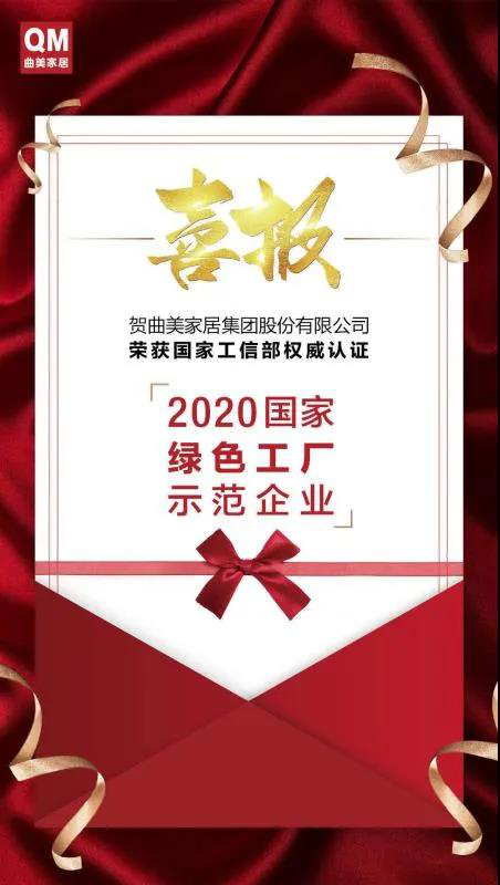 7188彩票网世纪助力曲美家具集团股份有限公司获得2020绿色工厂示范企业